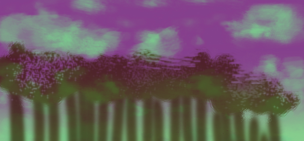 Si miramos hacia arriba se verá tonos rosados pero si miramos entre los troncos veremos como si hubieran mas. La niebla lo difuminará todo